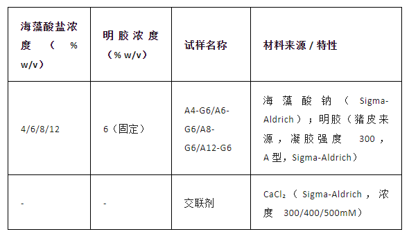 ②交联时间:在 500mM CaCl₂浓度下,交联 15 分钟的支架刚度显著高于 5 分钟、10 分钟(p<0.05),且 15 分钟能避免支架因交联不充分导致的结构松散(如 5 分钟交联的 A12-G6 支架易变形)。