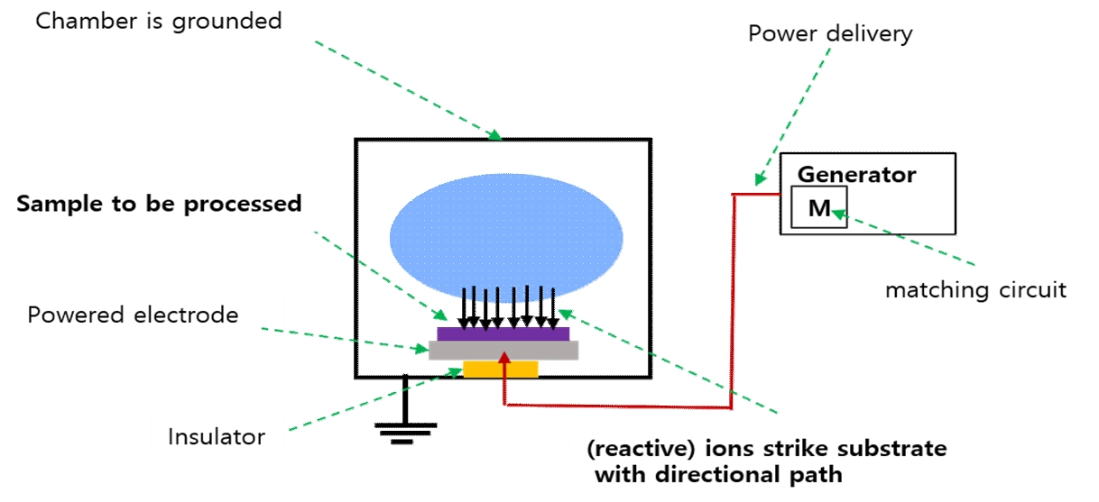 即“反应性离子主导” 模式,样品放置在加电电极上,高能离子轰击可提升刻蚀速率。