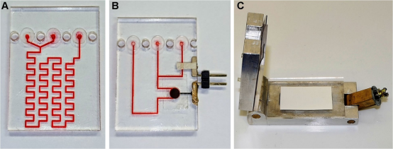 肝性脑病患者的抢救窗口期极短,要求检测响应时间必须控制在分钟级。ELVEFLOW 的快速启停技术使流体泵启停相位误差仅 150ms,配合氨气敏电极的直接检测模式,实现 15 秒内快速响应、3 分 20 秒出具最终结果,较传统实验室检测效率提升 10 倍以上。这种高效性在临床测试中得到验证:该新型分析仪对 10-200μmol/L 浓度区间的血氨样本检测灵敏度达 0.87μA・L/μmol・cm²,检测下限低至 5μmol/L,完全覆盖肝性脑病患者的动态监测需求。图2.组成检测模块的不同单元的真实图像:A 微混合单元、B 传感单元和 C 处于打开位置进行膜交换的气体扩散单元三、临床价值落地:从三甲医院到基层医疗的全场景覆盖